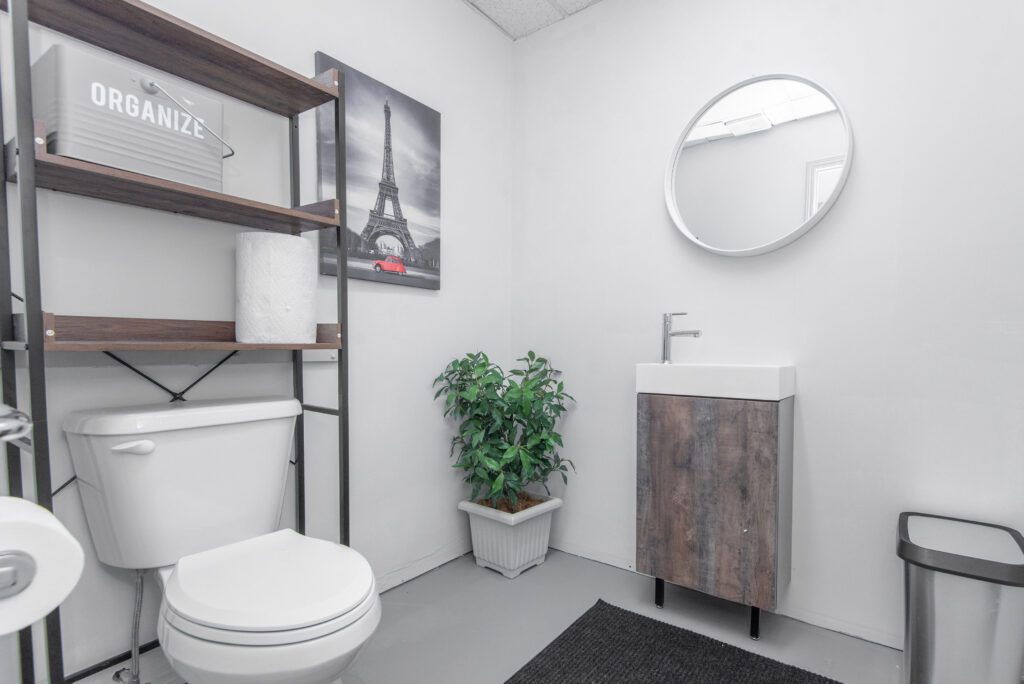 Bay 10B has been built out in many distinct spaces. It comes complete with utility room, bathroom, space for a staff room with a plumbing ruff in and large office or treatment room.
